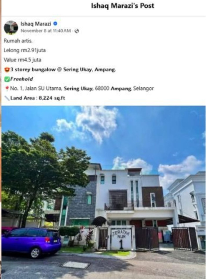 Sebelum ini, tular di media sosial mengenai sebuah kediaman mewah di Jalan SU Utama, Selangor akan dilelong.