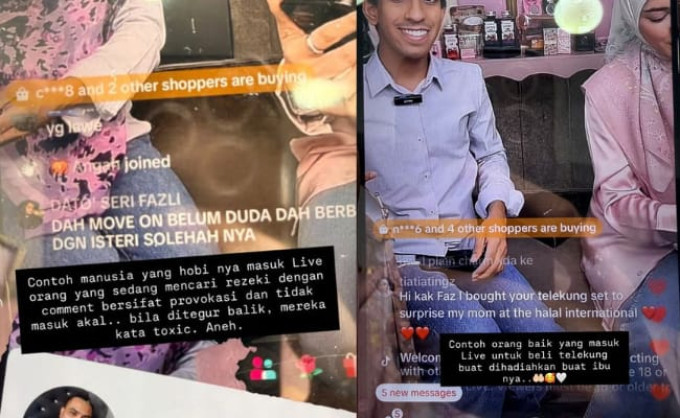 "Contoh orang baik yang masuk live untuk beli telekung buat dihadiahkan kepada ibunya," katanya.